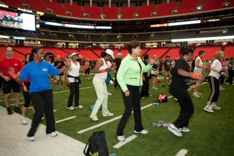 Here’s most of the group—the "A" team—who worked out at the Dome and then, because they were the biggest team, went to dinner with me. We had a blast. Some are from Atlanta, some came from Maryland and Utah. The dinner with the "A" team was at Aja, a modern asian kitchen in Buckhead Atlanta, and also made possible by Grey Goose and Conjure.