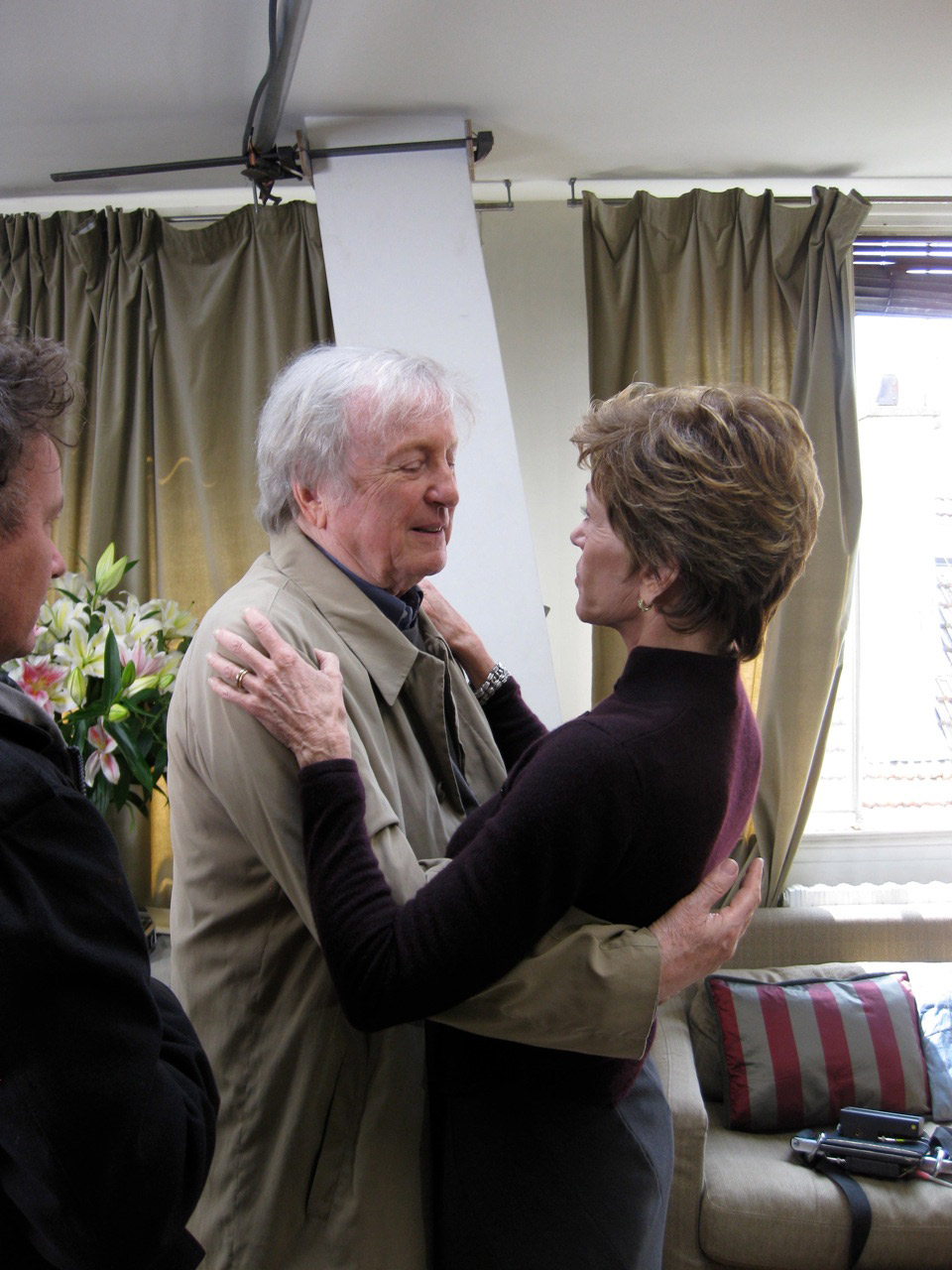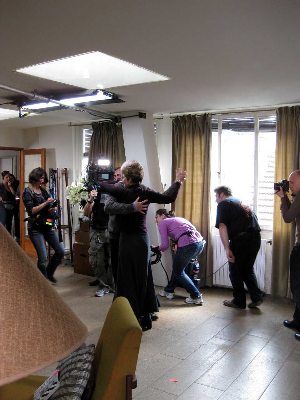 These are the greatest pictures, Jane! You look wonderful! I’m sure it was a very emotional scene to do! It’s just so neat to see pictures from behind the camera! That must be VERY difficult for Dominique to carry that heavy camera!! It does look like he is wearing a harness though! I can see Stephane’s children well enough to see that they are very cute indeed! So glad your cold is better!:)
