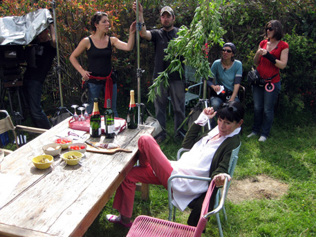 So in this scene where we’re enjoying a barbacue in the garden, our friend, played by Claude Rich (in the cap) suggests putting a swimming pool in place of the vegetable garden. Geraldine’s husband is totally opposed. Stay tuned.