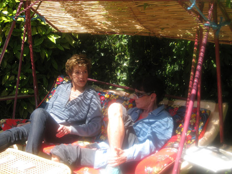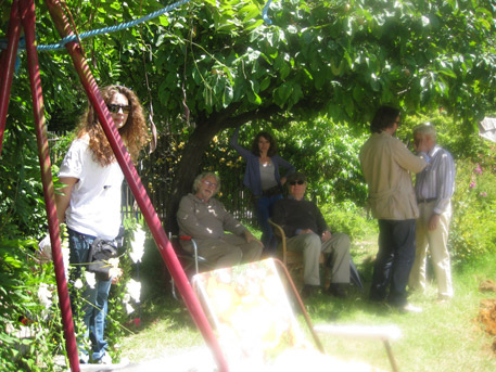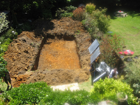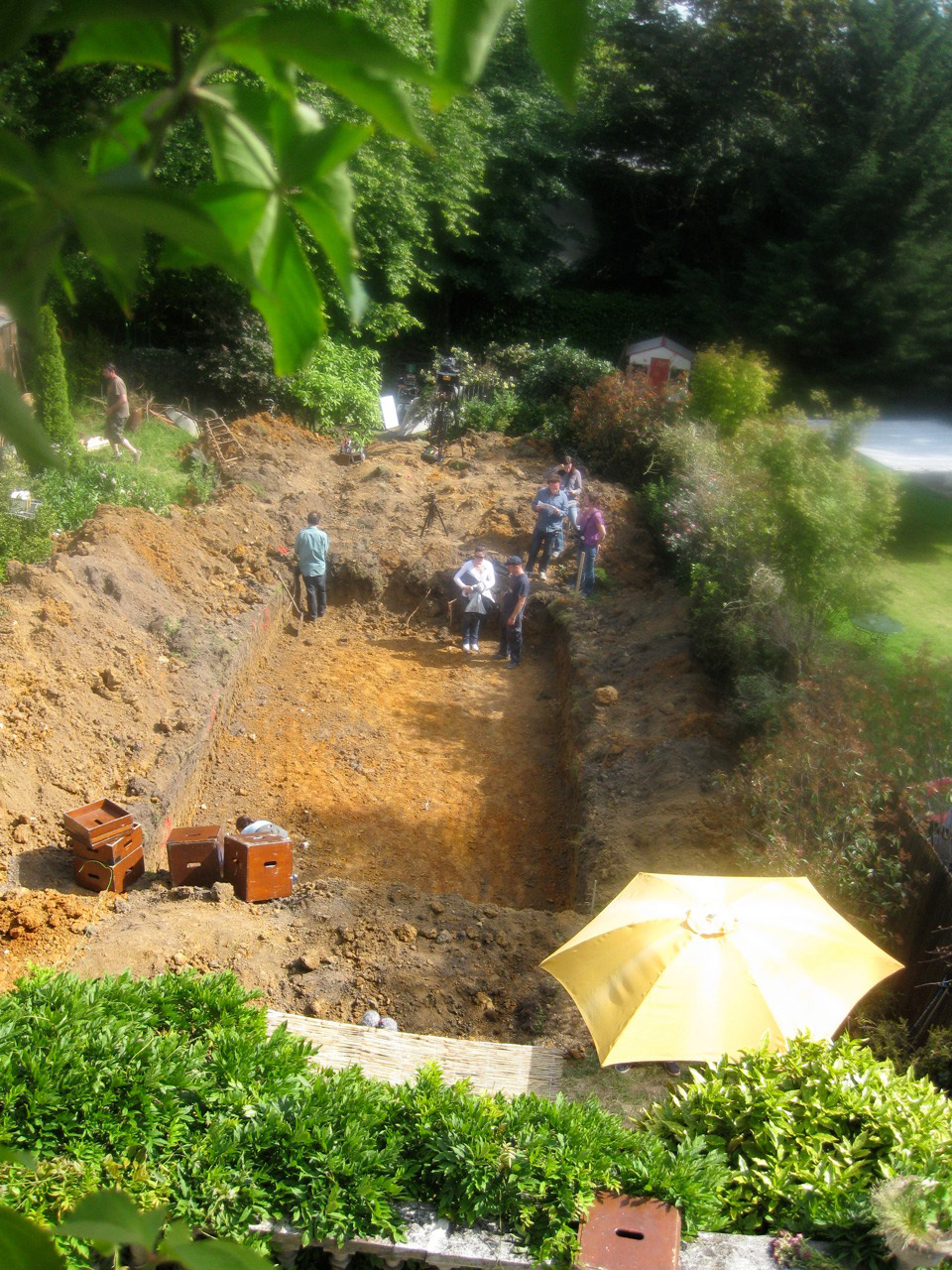 Today we filmed—all of us—and it was, finally, hot…actually hot…too hot for the clothes we had on—I had a double layer of cashmere and roasted! The pool has been dug and it was fun.