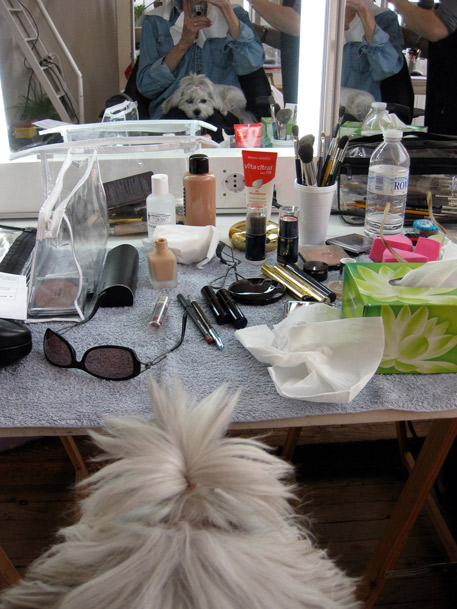 Pierre Richard is one of the most famous and beloved actors in France, known particularly for his comedies. Today we shot our first scene together. He told me he didn’t sleep well last night because he was nervous. Isn’t that sweet? It was a bathroom scene with us brushing our teeth and I lie to him and tell him that my cancer is gone–cured!!