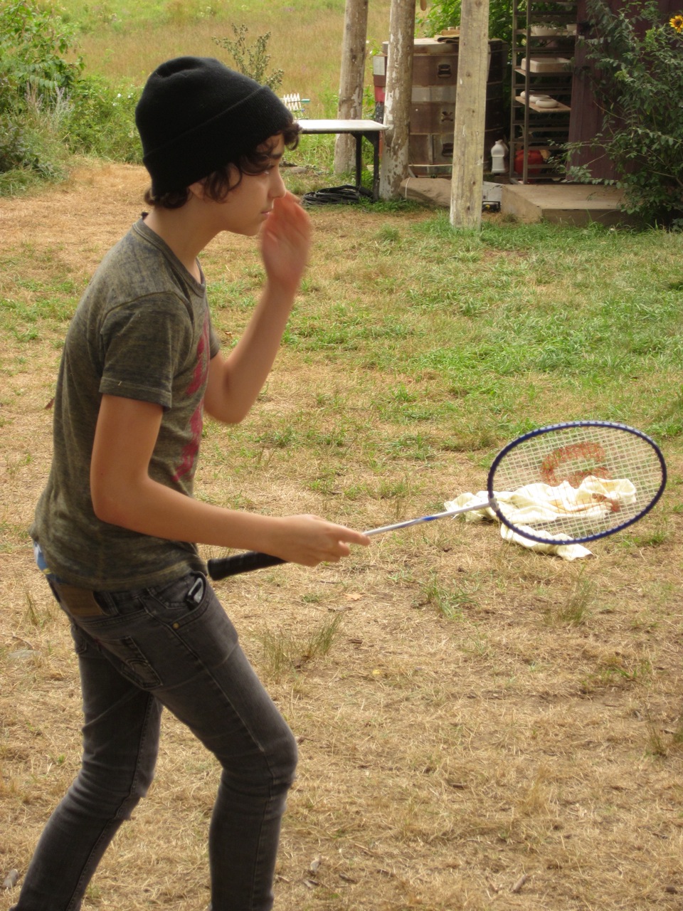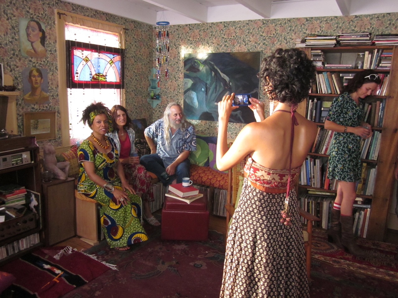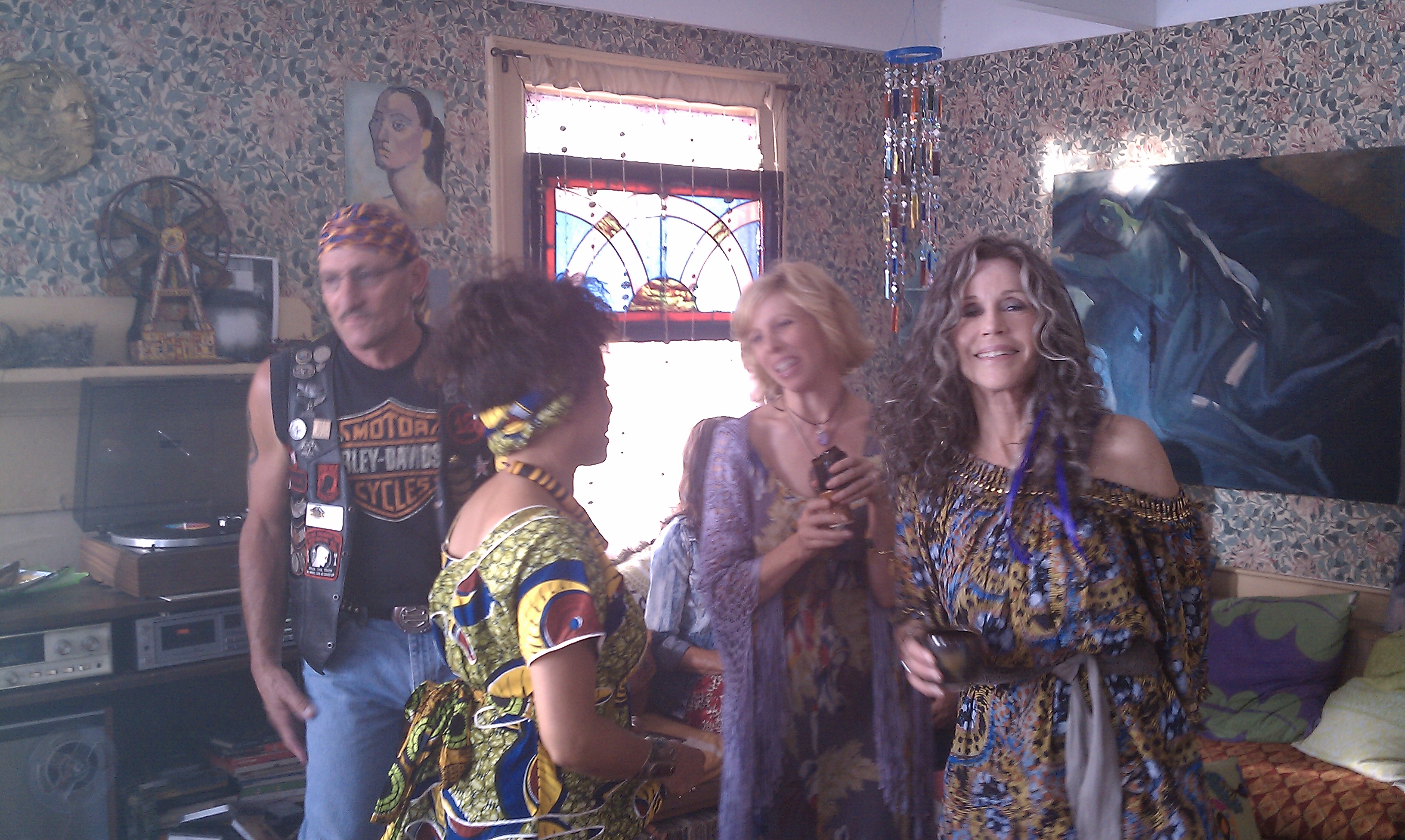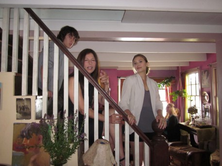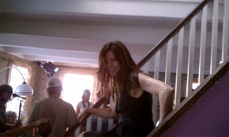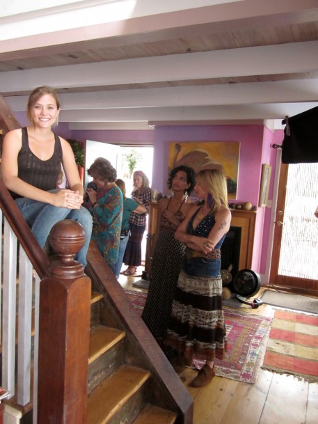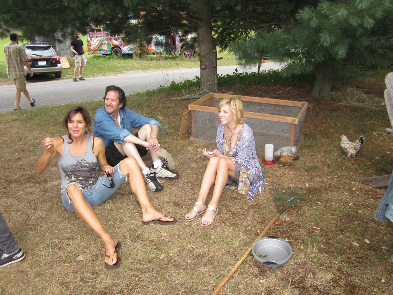 We shot a daytime party scene (“Grace” is a party-loving woman!) and I took some waiting- around- to- shoot pictures. You can tell there was a mellow vibe, right!? Bruce filmed much of it in one long hand held camera shot and those who saw it said it looked liked a real party. People were having fun. The sound man, Vince, would turn an Al Green song I chose up real high so we’d get into the groove and then turn it off just as we started to speak cause we don’t have the rights to use the song but I wanted us all to be movin and groovin to the right mellow tempo for when the film is actually scored. The weather was sweet so folks would be outside playing, talking, laughing, finding frogs….though the party was indoors.