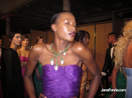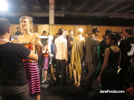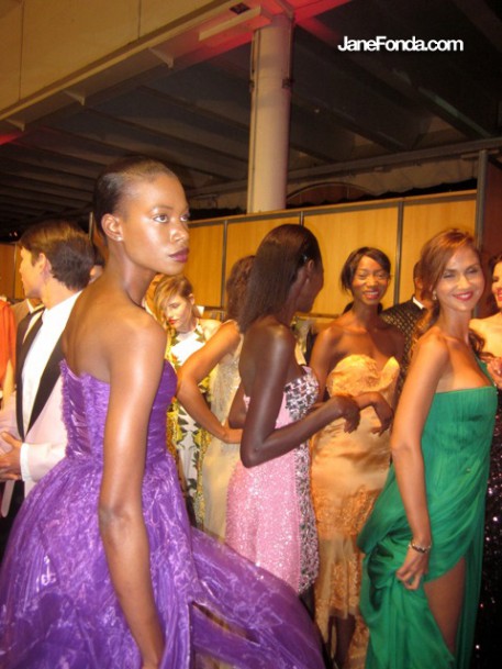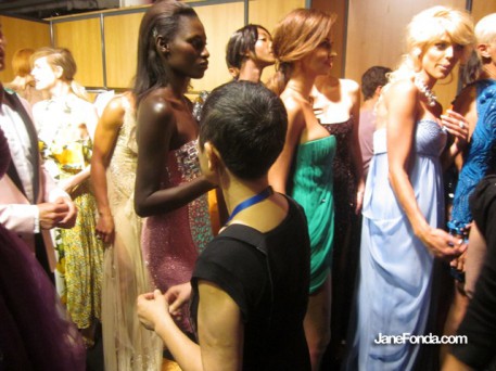 Naomi Campbell asked me to take part in her Fashion for Relief fashion show to benefit Japan. I closed the show with a long white, beaded Marquesa gown but don't have any pictures of it. Lots of backstage pics though.