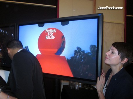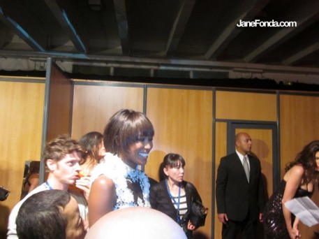 With Aimee Mullins on the right and model Doutzen Kroes on the left. They are both L'Oreal brand ambassadors. This was before we went to the AmFar event. I didn't get to know Doutzen, but Aimee is a wonderful woman. She has no legs and wears different prosthetics depending on what shoes, etc she's wearing. This day she told me she had her 4 inch pradas on. You may have seen the awesome picture of her running on a beach in a bathing suit with high tech metal prosthetics on that are shaped in a large curve. I didn't know who she was when I first saw (and cut out) this photo.