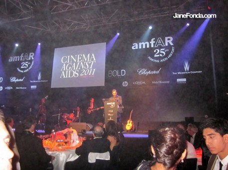 At the huge Amfar dinner and auction. They raised over 10 million euros!! AmFar was started by Liz Taylor and the evening was also a homage to her.