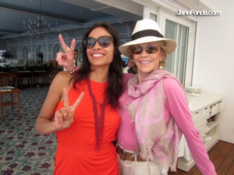 Rosario Dawson was having lunch on the terrace. We're on the board of Eve Ensler's V-Day, a global effort to stop violence against women and girls. Rosario is one swell, fierce lady!!