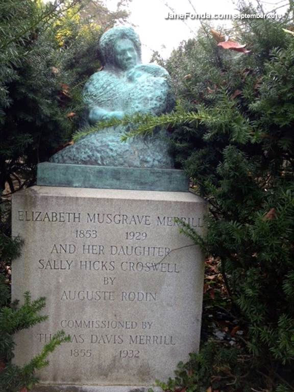 A grave stone with a statue by Auguste Rodin