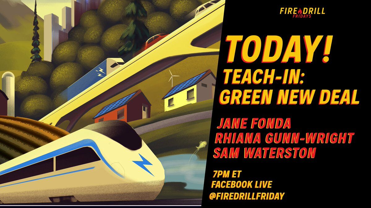 We’re Live! Join Jane Fonda, Sam Waterston, and Joanna Zhu with Sunrise Movement to talk about why a Green New Deal is so critical if we stand any chance to protect our climate.Join us this Friday at 11am ET at the US Capitol for #FireDrillFriday